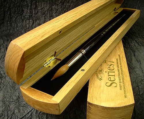 Series 7 Kolinsky Sable Brushes by Winsor & Newton- Special Edition Wood BoxIn 1866 Her Majesty Queen Victoria gave orders that Winsor & Newton holders of the Royal Warrant be commanded to produce the very finest water colour brushes possible in her favourite size: the No.7. The resulting brush known as the Series 7 made from the finest Kolinsky sable hair set a standard of quality which is still maintained today. The Winsor & Newton Series 7 brush serves as the standard for the three principal qualities that define the finest water colour brush; a rapier-like point perfectly balanced spring and extraordinary capacity and flow control.We have a limited quantity of Series 7 sizes that come in a special edition wood box. These are perfect for giving as a gift- or for yourself! The boxes are solid wood and feature a dual magnetic closure. There is enough room in each box for you to add a few more of your own special brushes. The boxes are great for travel or for taking to class out in the field etc. Prices are per brush; the photo illustrates the box opened and closed.