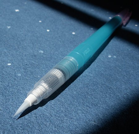 Portable easy-to-use brushes with a reservoir that you fill with water. No more spills! No mess to clean up! Use them anywhere- take them on vacations or out in the field for plein air painting. You lightly squeeze the brush handle to dispense water directly to the brush tip so you don't have to carry a bottle of water to dip your brush into! This medium brush has a round pointed tip that is 12mm long. With the handle and cap the overall length is 7-1/8 inches.