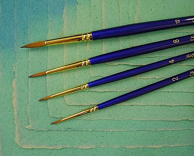 Sapphire Brushes- Long Handled Rounds...The Sapphire line of brushes is designed for artists working in all mediums who love the pointing color handling spring and smooth application of natural sable; but also demand the durability and value associated with synthetic brushes. The handles are made of kiln-dried beechwood and the ferrules are precision engineered and 22K Gold plated. A unique blend of the finest red Kolinsky hair and synthetic filaments delivers the ultimate painting experience. Eah brush is hand made! Short handled brushes are best suited for fine art and tole painting while long handled brushes are best suited for fine art painting particularly for work at an easel.Please note that the photo is to illustrate the different sizes that are available; price listed is for one brush and not the entire series.