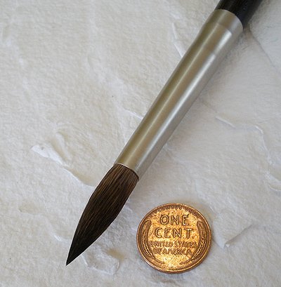 Arches Petit Gris Pur Squirrel Watercolor Brushes- RoundsStringent manufacturing standards have been adhered to in producing these quality brushes. Best quality extra-fine pure grey squirrel is chosen for its exceptional fineness and elasticity. Squirrel hair holds a lot of paint and releases beautifully onto the paper. The handle is an extension of the hand - it is ergonomically designed and made of solid matte varnished blond oak stained to a deep finish a timeless wood with a soft and sensual feel. The ferrule is also ergonomically designed and is made with matte nickel; the crimping is discreet and designed to blend perfectly with the handle. A protective cap keeps the brush head well shaped and away from harm. The bottom tip of the handle is angled with a sgraffito tip for techniques involving scratching and scraping into the paper. (Please note that the photo shows all of the sizes that are available. This is to illustrate the difference between the sizes; the prices listed are for one brush only and not the complete set.)